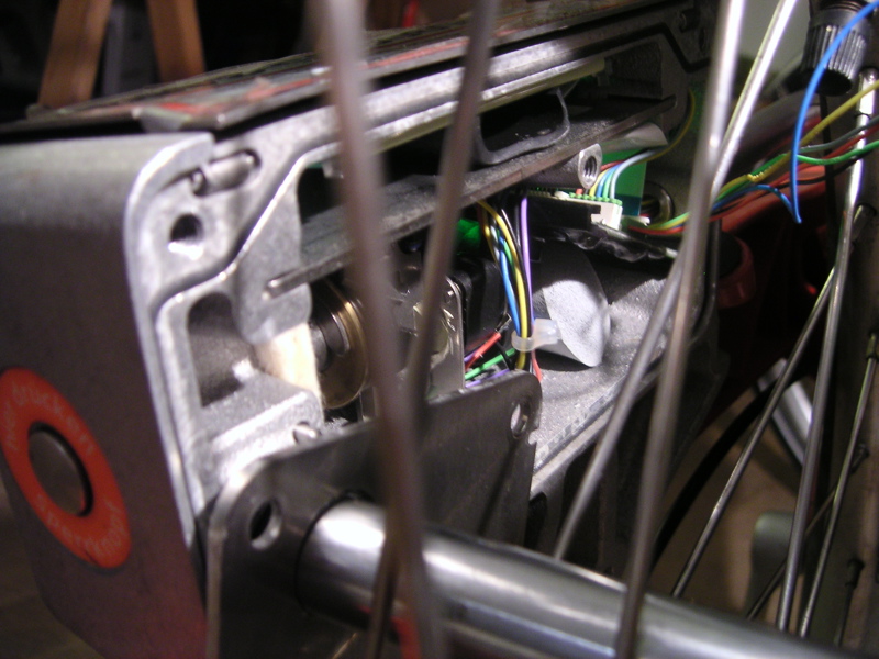 Im November 2003 wurde uns ein CallABike ‘zugetragen’, das nicht richtig abgeschlossen wurde. Dieses musste erstmal als Testobjekt herhalten. Die meisten dachten, dass in dem Schlosskasten GPS oder sonstiger Funk enthalten sei, nach dem öffnen war hiervon jedoch nix zu sehen. Um die Schrauben der Schlosskästen zu öffnen, benötigt man nur ein Torx TR (Tamper Resistant). In dem Kasten ohne Display ist die Stromversorgung durch Batterien sichergestellt (3x 1.5V Mono). Die beiden Kästen sind durch eine Art Bügel miteinander verbunden. In diesem Bügel befindet sich ein sechspoliges Kabel für den Strom und zwei Spulen. Damit kann geprüft werden, ob das Schloss wirklich geschlossen ist, oder einfach kein oder nur irgendein anderer Bolzen zum Verschließen genommen wurde.
